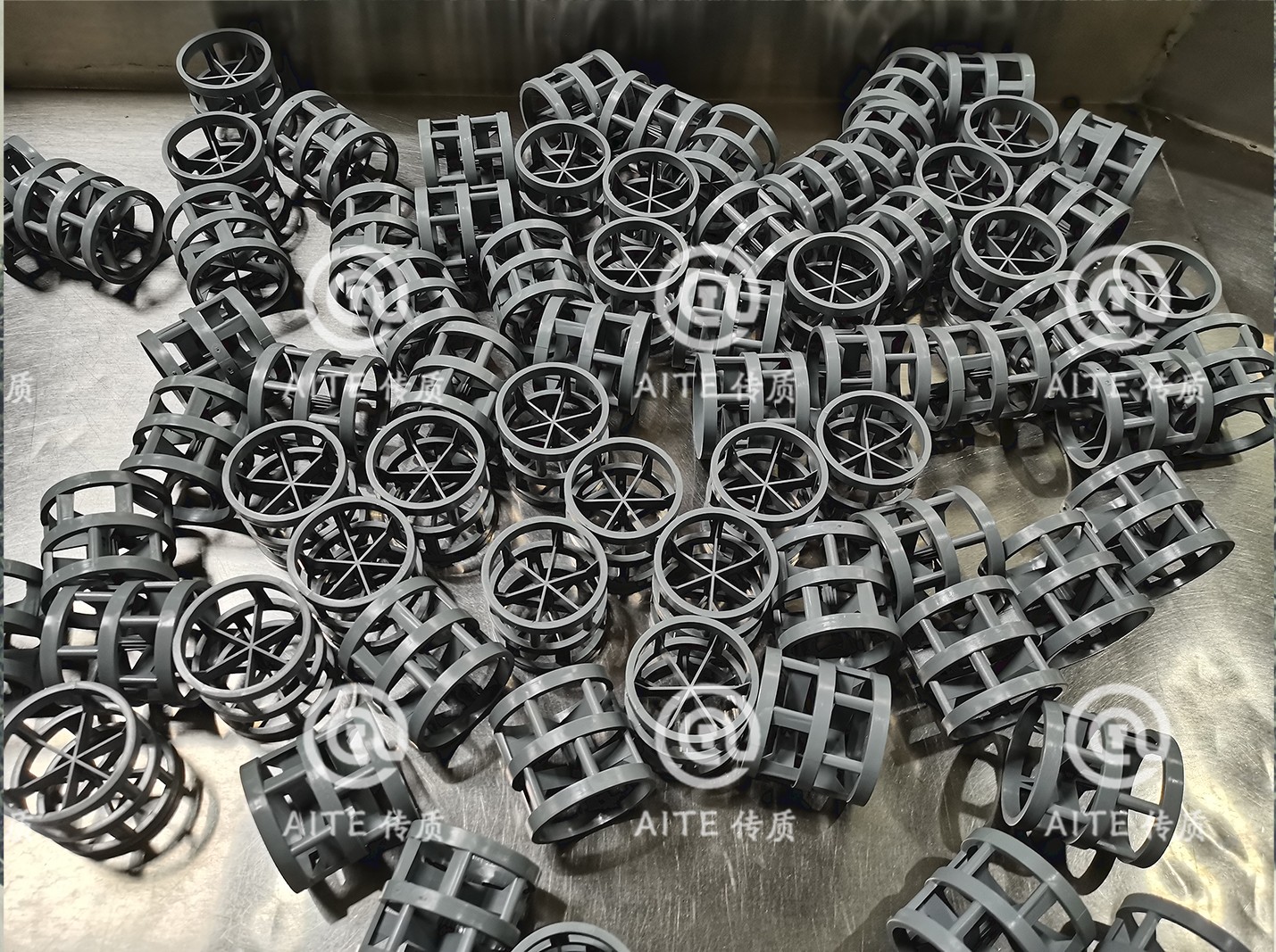 江西艾特传质科技有限公司可根据客户需求生产各种材质的:高流环,各种扁环,纳特环,酸洗填料,泡罩填料,筛网填料,梅花环/泰勒花环,科斯特花环,雪花环,R1无边花环,k2k3带齿花环,特拉瑞德环,海尔环,Q-Pack,兰帕克,牛帕克,贝它环,星星环,拉鲁环、矩鞍环、异鞍环,八四内弧环(麦勒环),共轭环、拉西环、阶梯环、多面空心球、浮球、射流环,阿尔法环,依格尔球,刺猬环,海胆球,孔板波纹规整填料、丝网波纹规整填料、蜂窝规整填料,丝网除沫器、折流板除雾器,槽式/槽盘液体分布器,管式分布器,气液分布器、液体收集器、驼峰支撑、填料格栅压栅、浮阀塔盘,筛板塔盘、泡罩塔盘,塔器容器等。