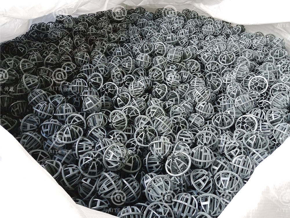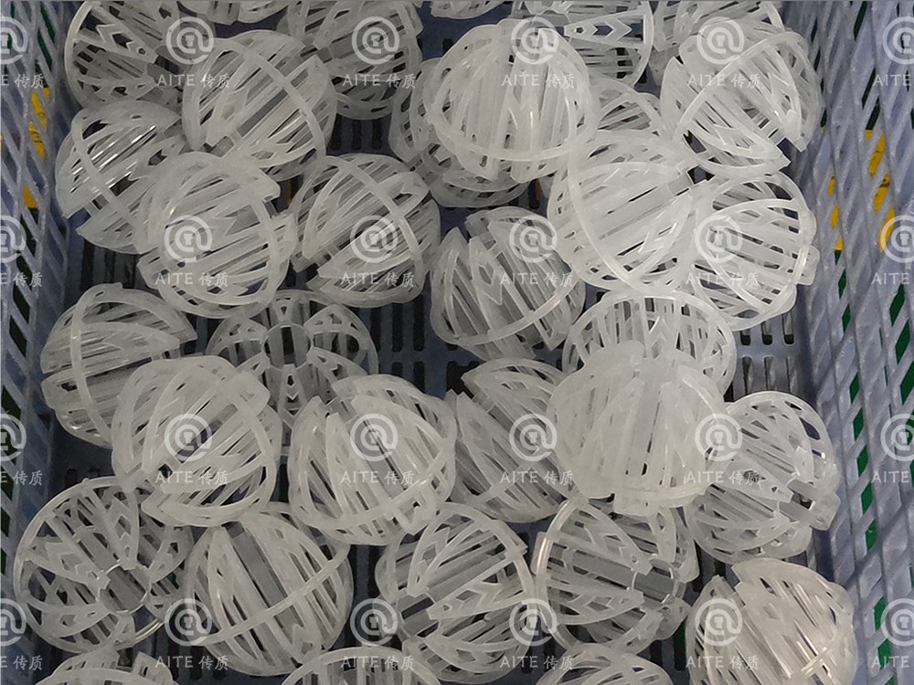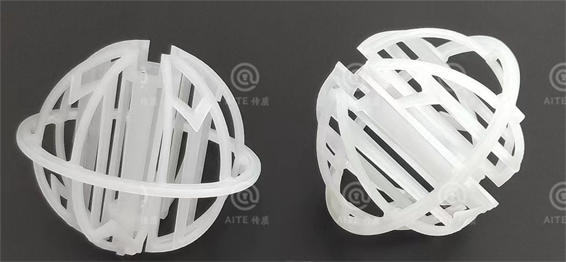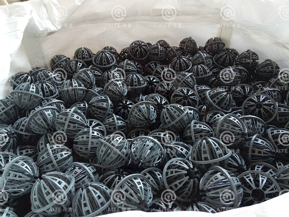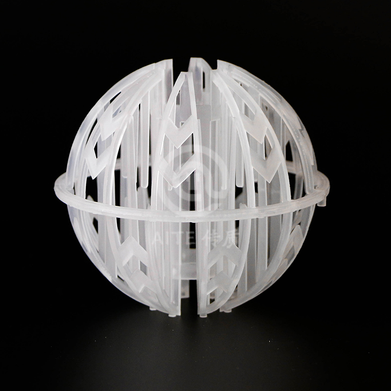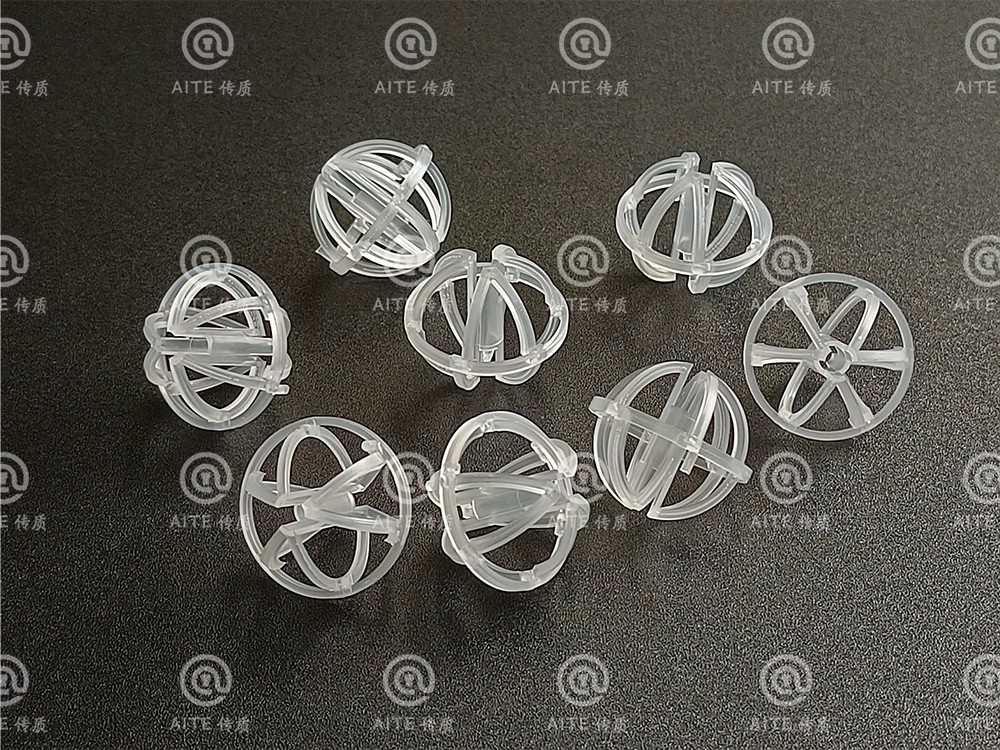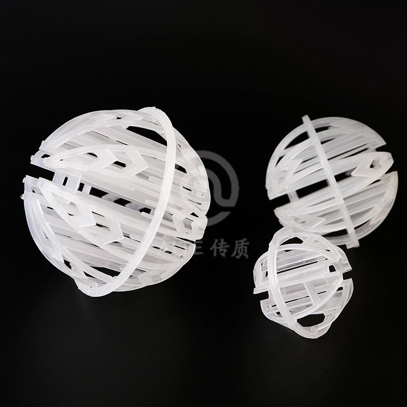 产品特性:1.增加了对称的滴水棒;2.比表面积大;3.极低的压力降;4.极高的操作能力;产品优点:1.气速高,高热传质率;2.优良的气液分离性能;3.防止套嵌,使分离更简单;4.散堆安装,安装便捷;5.适宜各种塑料材质,易成型;6.可预测性能。环保球流体阻力小(压降小),且沟流和壁流趋势小,流量大,气液接触良好。